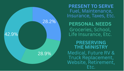 Our only mode of transportation and housing are both mobile and purchased used. As such, they will not last the length of time that a traditional house or commuter vehicle does. We are raising and ear-marking funds now for when that extremely large expense does occur. (Please email us that your donation is for this fund if that is your desire. Thank you!)